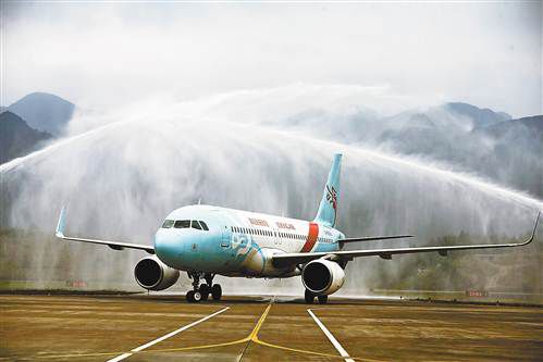 11月10日下午兩點半,隨著從杭州飛來的GJ8855航班降落在黔江武陵山機場,該機場再增一條航線,總航線增至七條。